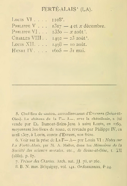 Tiré d’un document publié par la société Historique & Archéologique du Gatinais :Les séjours des rois de France dans le Gatinais (481 à 1789)