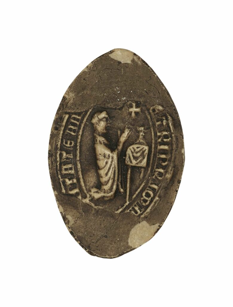 Légende : entre deux filets : [S P]ETRI PRIOR[IS] [FER]ITATE AL[PESIS]