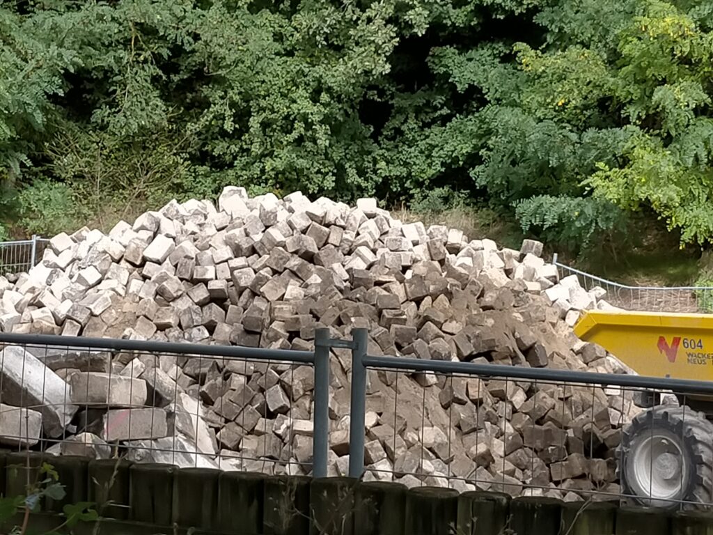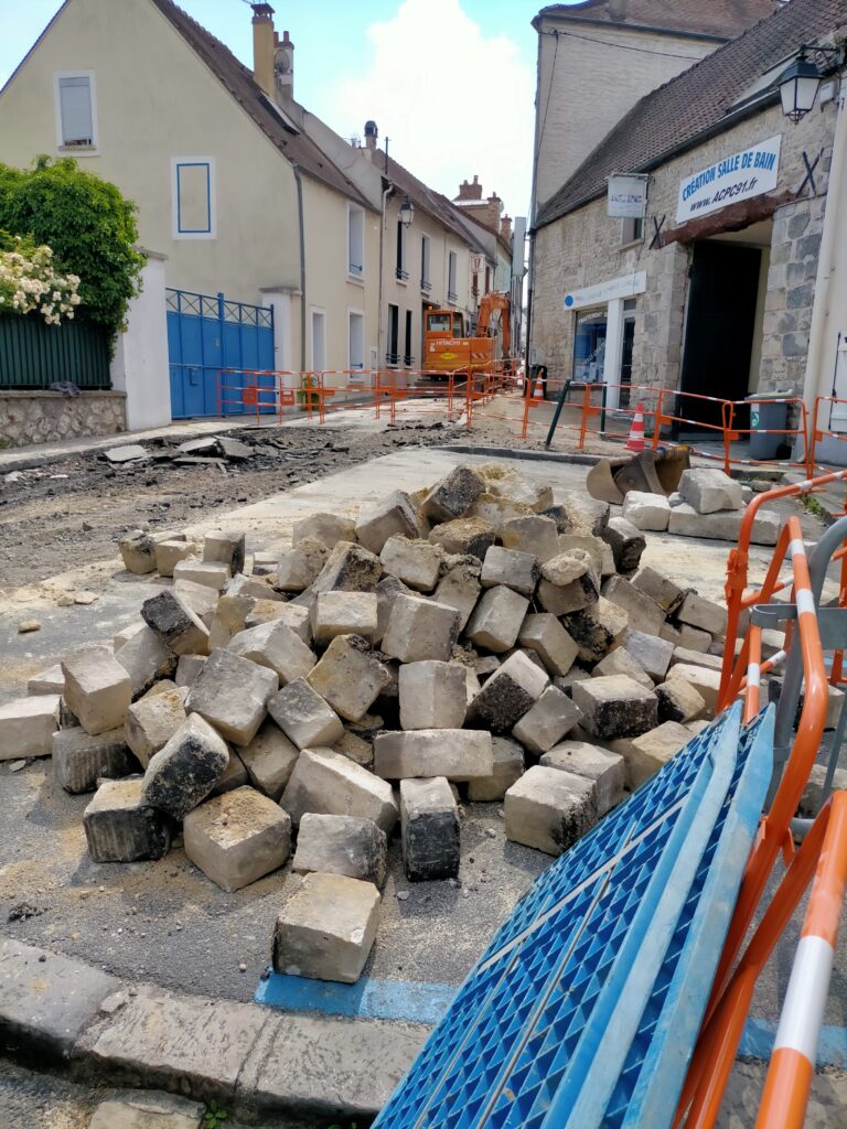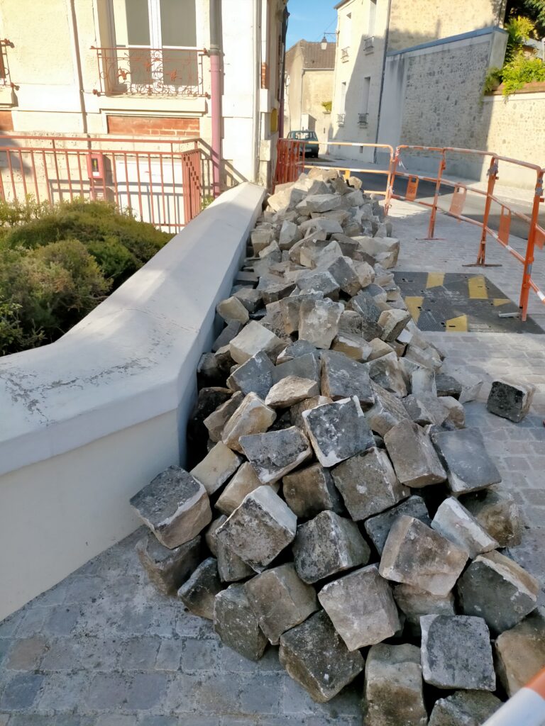 Démanteler puis déblayer des dizaines de mètres cubes de pavés et bordures historiques, sourcés localement dans les carrières et les remplacer par des pavés importés de l’autre bout du monde, alors qu’il est question de bilan carbone, de réindustrialisation, cela m’interroge.
