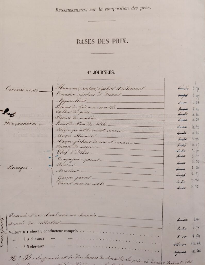 Tarification de la main d’œuvre.